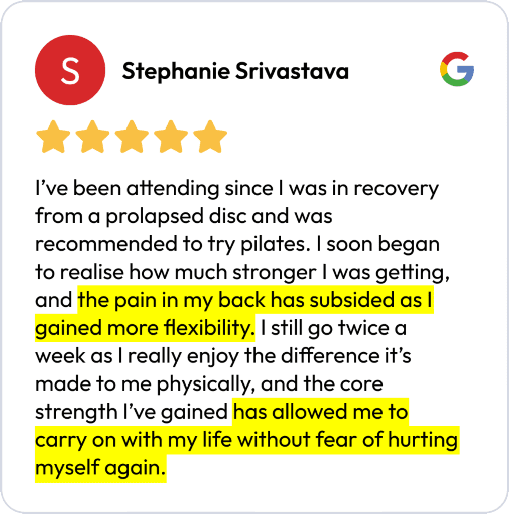 We’re more than just Pilates classes. Your membership includes pain consultations, monthly workshops and events, and expert resources to help reduce pain—plus ongoing support whenever you need it.