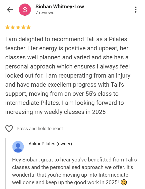 Throughout her degree, the somatic based practices and anatomy courses gave her a rich knowledge of the mechanics of the body. Coupled with an understanding of the psychological impacts of having a chronic injury, Tali has developed a well rounded understanding of the body and its connections to the brain, including physical coping mechanisms and complex movement habits. Now, her creative and holistic practice helps clients gain an awareness of their bodies through a kind, light hearted and accessible approach, allowing people to get the most out of Pilates and use it to strengthen, stretch and heal.